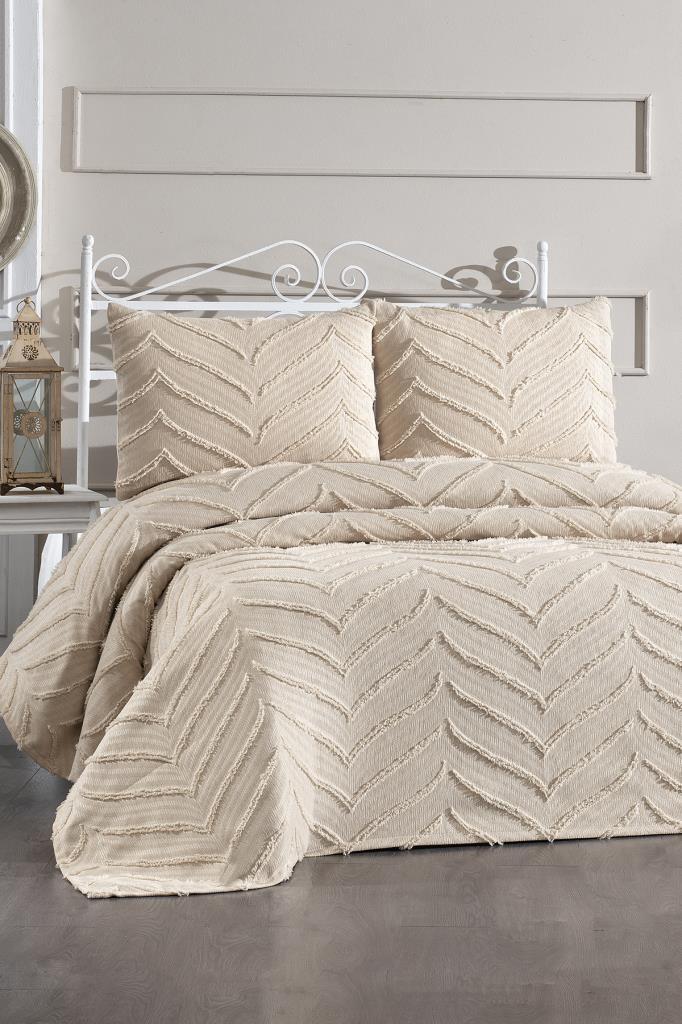 Çeyiz Diyarı Sementina 3 Parça Çift Kişilik Pike Takımı Bej