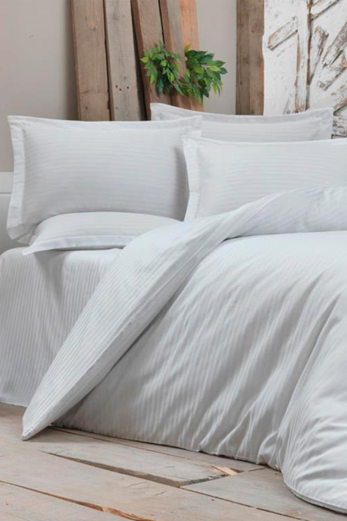 Çeyiz Diyarı Stripe Çift Kişilik PollySaten Nevresim Takımı Beyaz