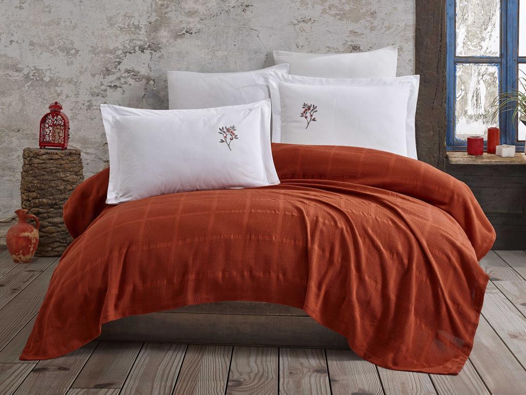 Çeyizdiyarı Rainbow Nakışlı Dokuma Pike Takımı Kiremit