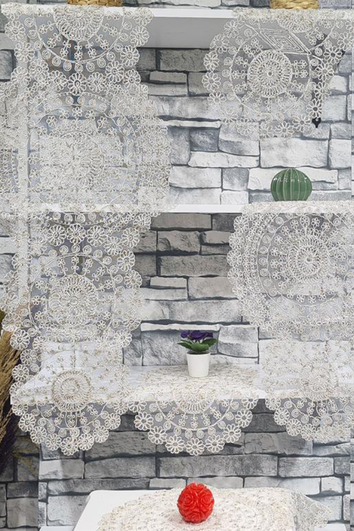 Supla : 30x43 cm / 2 Adet Runner : 83x37 cm / 2 Adet Runner : 44x130 cm / 1 Adet Tül üzerine kordone işlenerek üretilmiştir. Salonunuza zerafet ve şıklık katmak yada çeyiziniz için şık bir ürün sahibi olmak için tercih edebilirsiniz. YIKAMA TALİMATI -Makinada veya elde yıkayabilirsiniz max 30 derecede yıkayınız. -Çamaşır suyu ile leke sökücü kimyasallar kullanmayınız. -Yıkama esnasında koyu renkleri mümkün olduğunca ayrı tutunuz. -Ilık ütü ile ütüleyiniz. -Islak bekletmeyiniz. -Kurutma makinasında kurutulabilir.