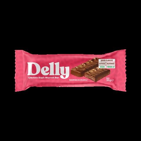 1 Kutu İçeriği 12 adet Delly Çikolata Kaplı, Bademli & Çilekli Meyveli Bar 35 g