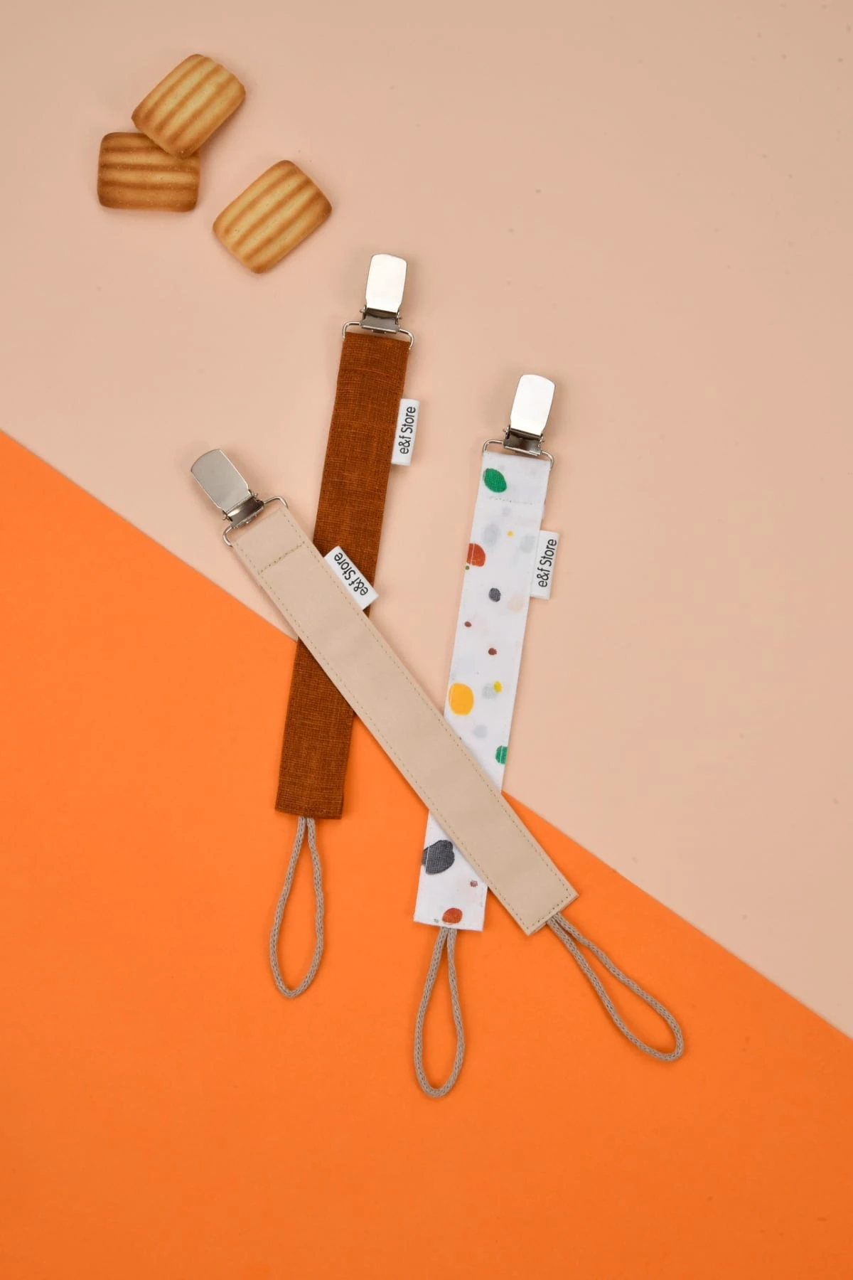 İkinci Şans - 3'lü Emzik Askısı Seti - Desenli - Kiremit - Bej