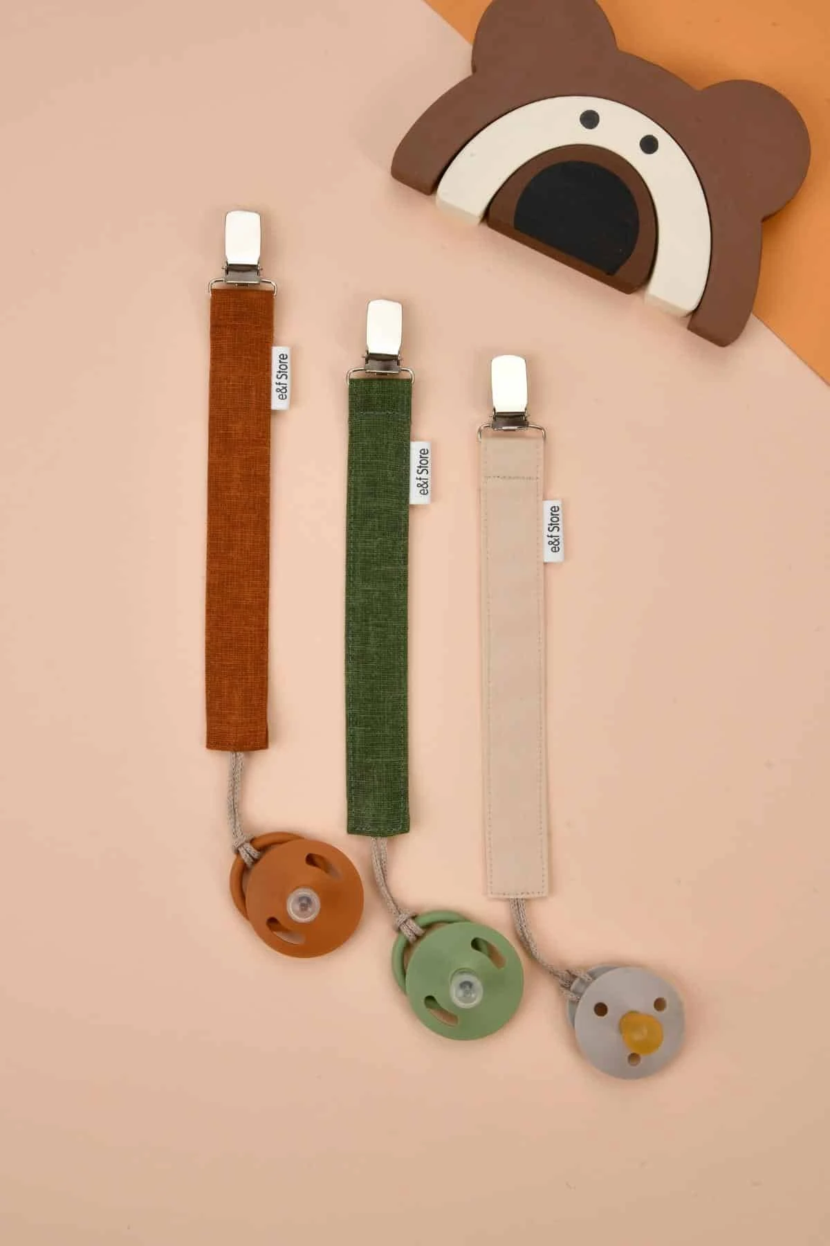 İkinci Şans - 3'lü Emzik Askısı Seti - Kiremit - Yeşil - Bej