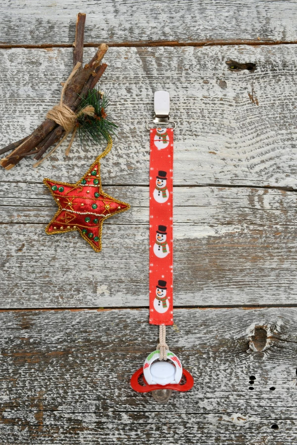 İkinci Şans - Kardan Adam Desenli Kırmızı Emzik Askısı - Yılbaşı Özel Koleksiyonu