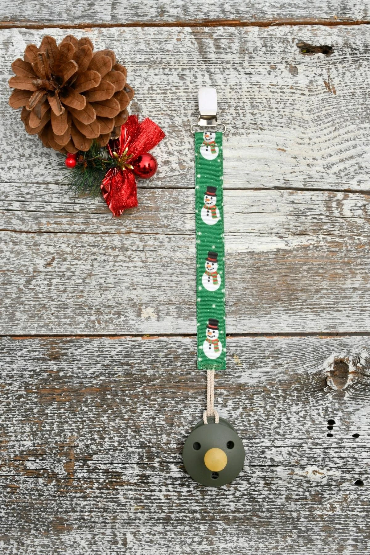 İkinci Şans - Kardan Adam Desenli Yeşil Emzik Askısı - Yılbaşı Özel Koleksiyonu
