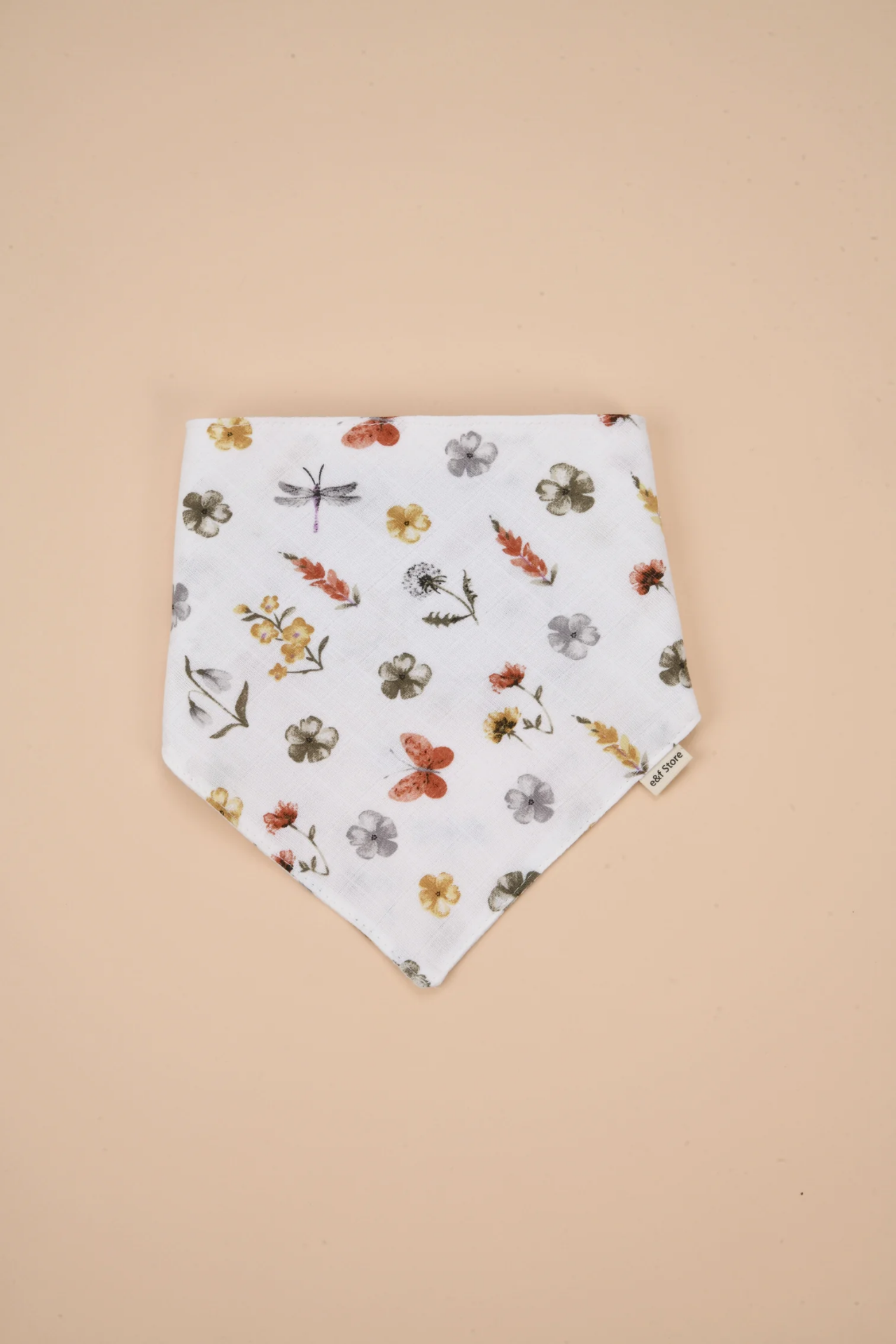 İkinci Şans - Organik Sertifikalı Çift Katlı Müslin Kumaş - İki Çıtçıtlı Bebek Salya Önlük / Fular - Çiçek Desenli