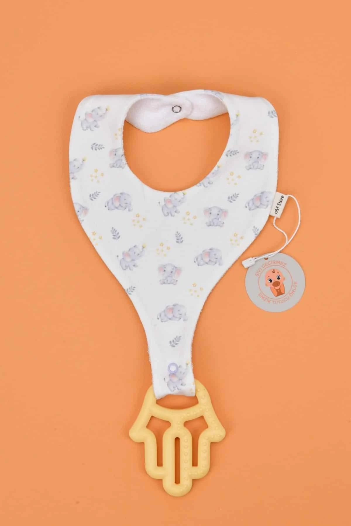 İkinci Şans - Sıvı Geçirmez Emzik Tutucu Mama Önlüğü - Sevimli Fil