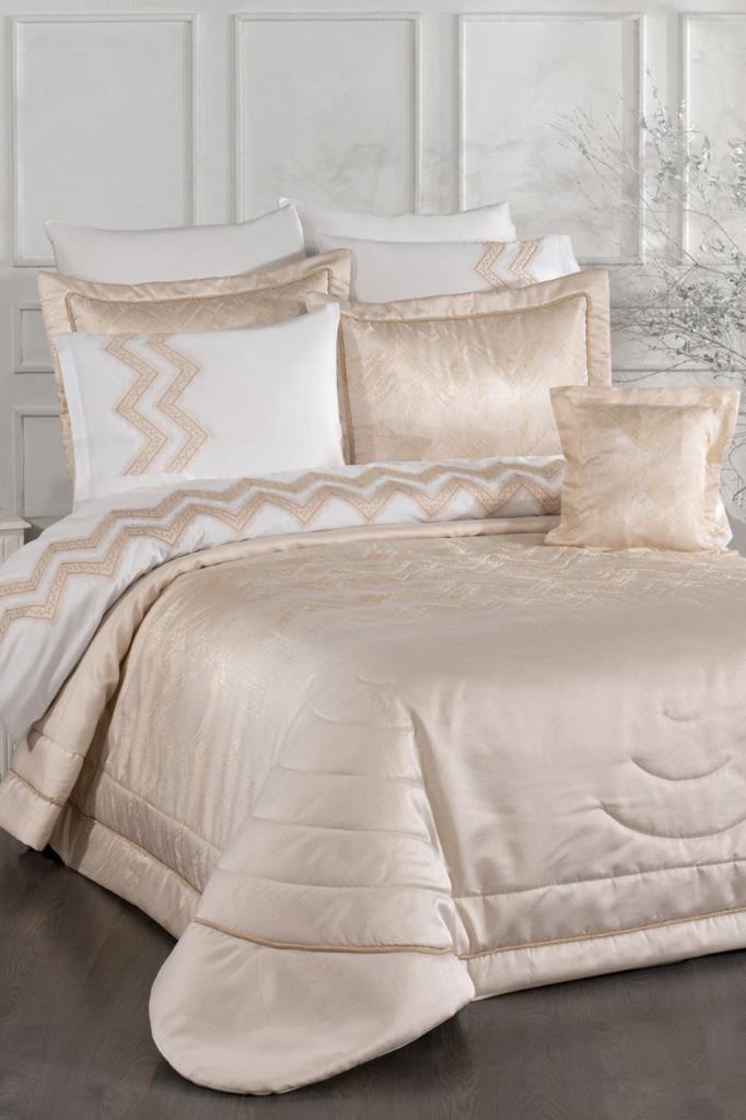 10 Parça Çeyiz Seti Marka : Çeyiz Diyarı Yatak Örtüsü: 250x255 cm / 1 adet Nakışlı Nevresim: 200x220 cm / 1 adet Çarşaf :240x260 cm / 1 adet Nakışlı Yastık Kılıfı : 50x70 cm (2 adet) Volanlı: 55x75 cm (2 Adet) Pano Yastık: 50x70 cm (2 Adet) Kırlent Kıfı: 45x45 cm / 1 adet Nevresim takımı %100 Pamuk Kumaştan Üretilmiştir. Yatak Örtüsü Mikro kumaştan üretilmiştir. YIKAMA TALİMATI -Makinada veya elde yıkayabilirsiniz max 40 derecede yıkayınız. -İlk yıkamayı ılık su ile ters çevirerek yıkayınız.her zaman ters yıkamanız ürün ömrünü uzatır. -Çamaşır suyu ile leke sökücü kimyasallar kullanmayınız. -Yıkama esnasında koyu renkleri mümkün olduğunca ayrı tutunuz. -Ilık ütü ile ütüleyiniz. -Islak bekletmeyiniz. -Kurutma makinasında kurutulabilir.