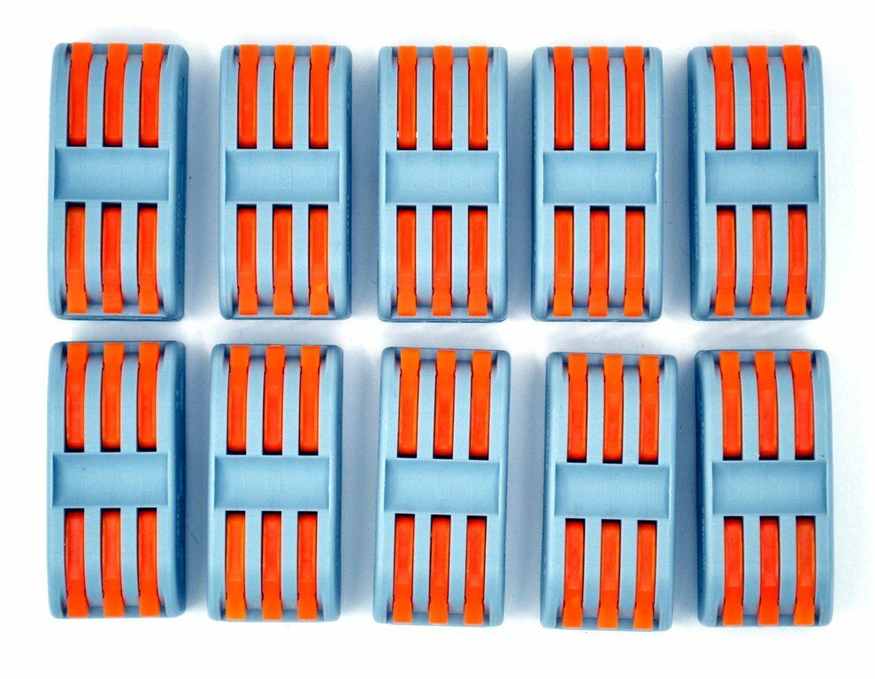 10 Adet 3 Giriş 3 Çıkış Kablo Konnektörü Mandallı Buat Klemensi