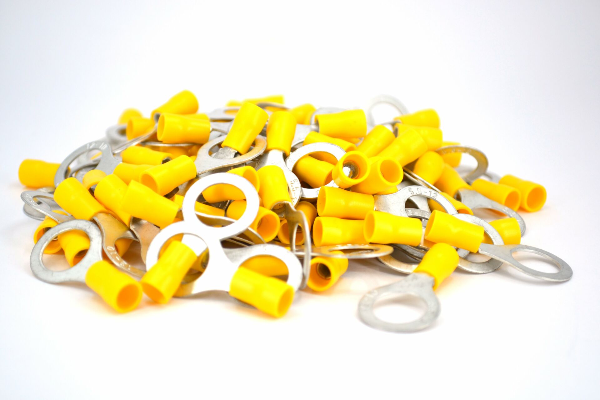 100 Adet 4,00-6,00 Bakır Kablo Pabucu Sarı M12 Delikli Sıkmalı Sulye