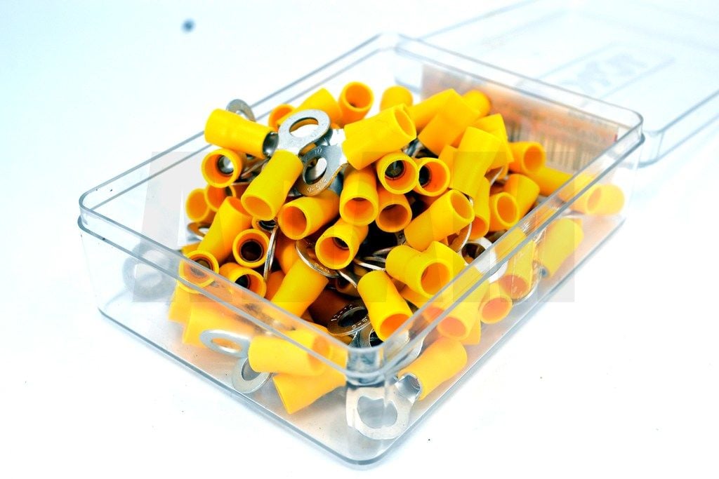 100 Adet 4,00-6,00 Kablo Pabucu Sarı M6 Delikli Sıkmalı Sulye