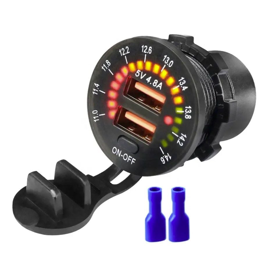 USB QC3.0 Şarj Port Kadran Voltmetreli Anahtarlı Yuvarlak