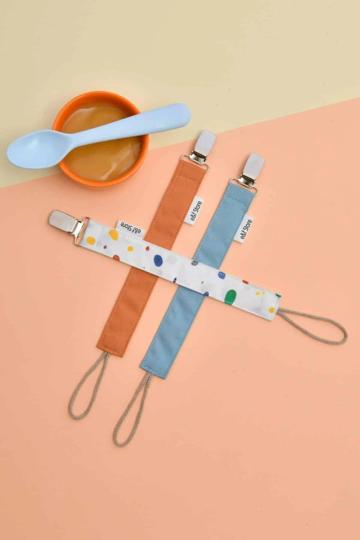 Yerli üretimdir ve El Yapımıdır. %100 Pamuk Poplin Kumaş, %100 Pamuk İp ve Nikel Kaplı Metal Kullanılmıştır. Oldukça Pratik Olan Emzik Askısını Tüm Kıyafetlere Kolayca Takabilirsiniz. Kopmaya Dayanıklıdır. Elde Yıkamaya Uygundur. Boyutları: 2,5 cm*27 cm 3 Adet Olarak Gönderilmektedir. Bebek Hediyesi Paketinin İçeriği:1 Adet Somon, 1 Adet Petrol Mavisi, 1 Adet Sulu Boya Desenli UYARI: Küçük Parçalar İçerdiği İçin Yetişkin Gözetiminde Kullanılmalıdır.