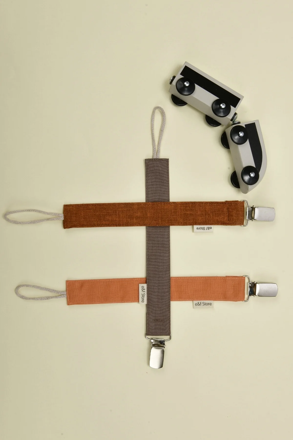 3'lü Emzik Askısı Seti - Keten Kiremit - Kahverengi - Somon