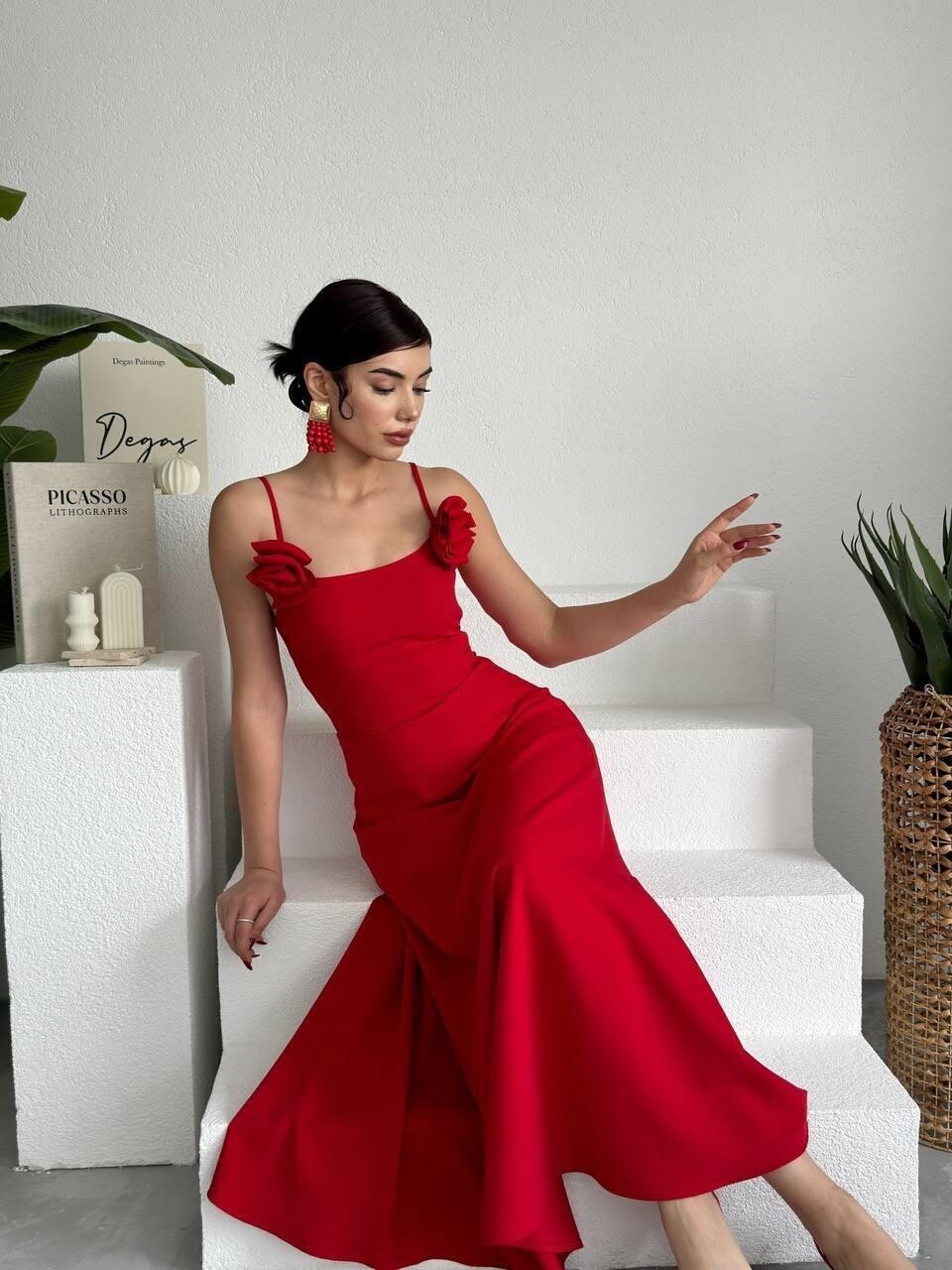 Matilda Gül İp Askılı Elbise