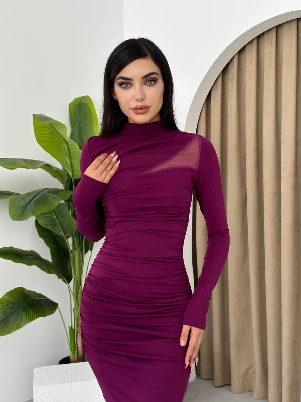 Dorra Yırtmaçlı Uzun Kollu Elbise