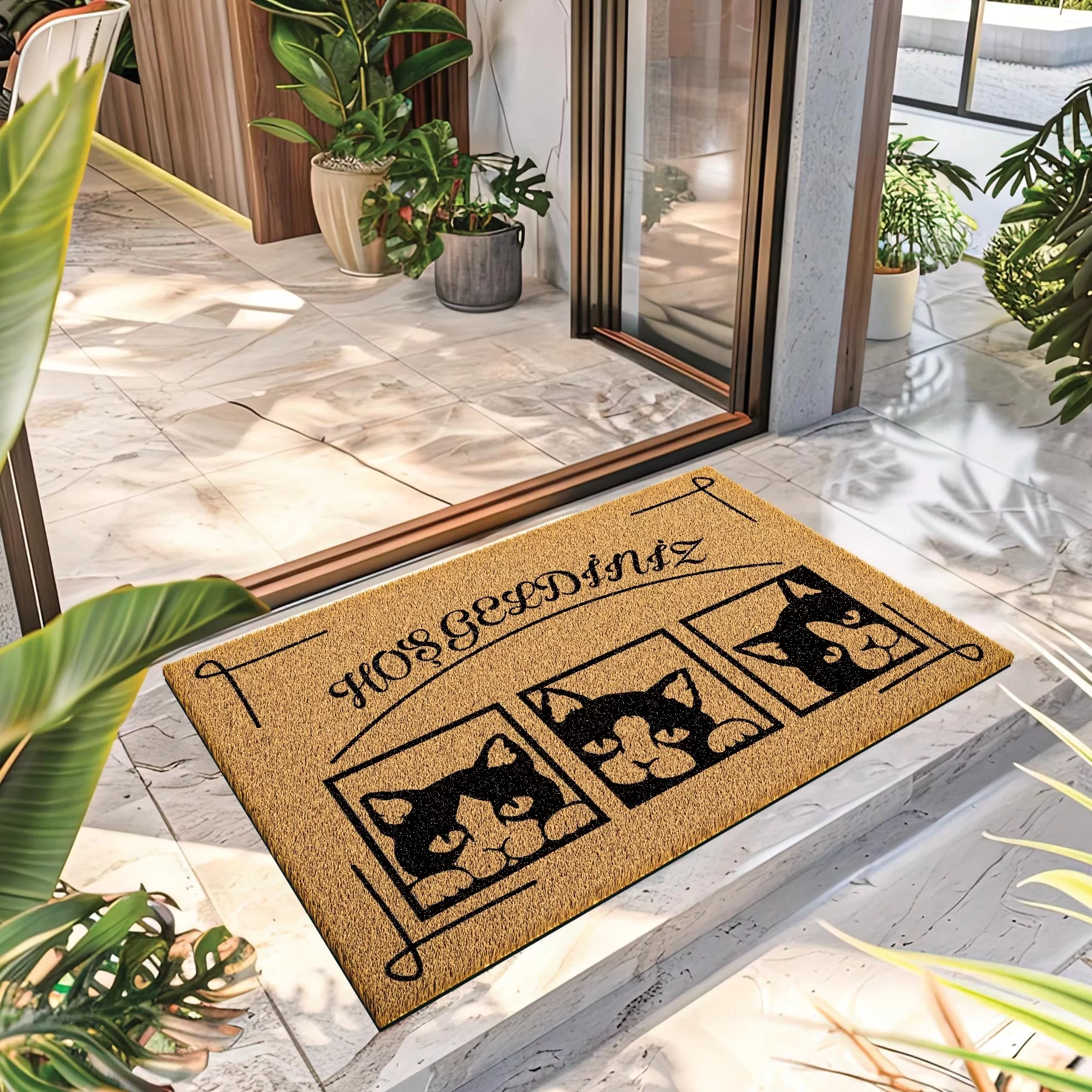 Decovetro Paspas Hoşgeldiniz Kedi Desenli Kapı Önü Paspası 40 x 60 Cm