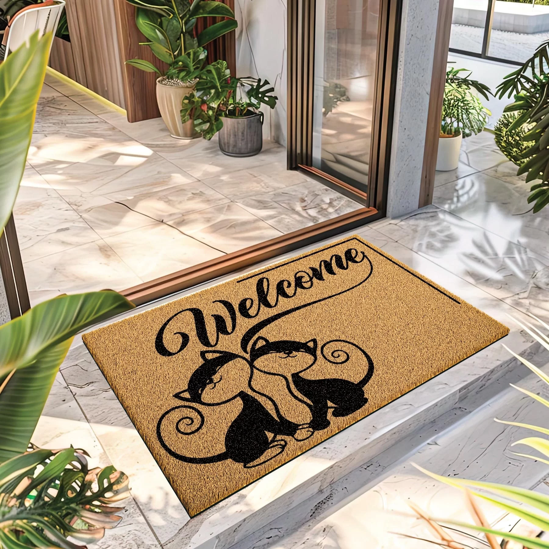 Decovetro Paspas Welcome Cats Desenli Kapı Önü Paspası 40 x 60 Cm