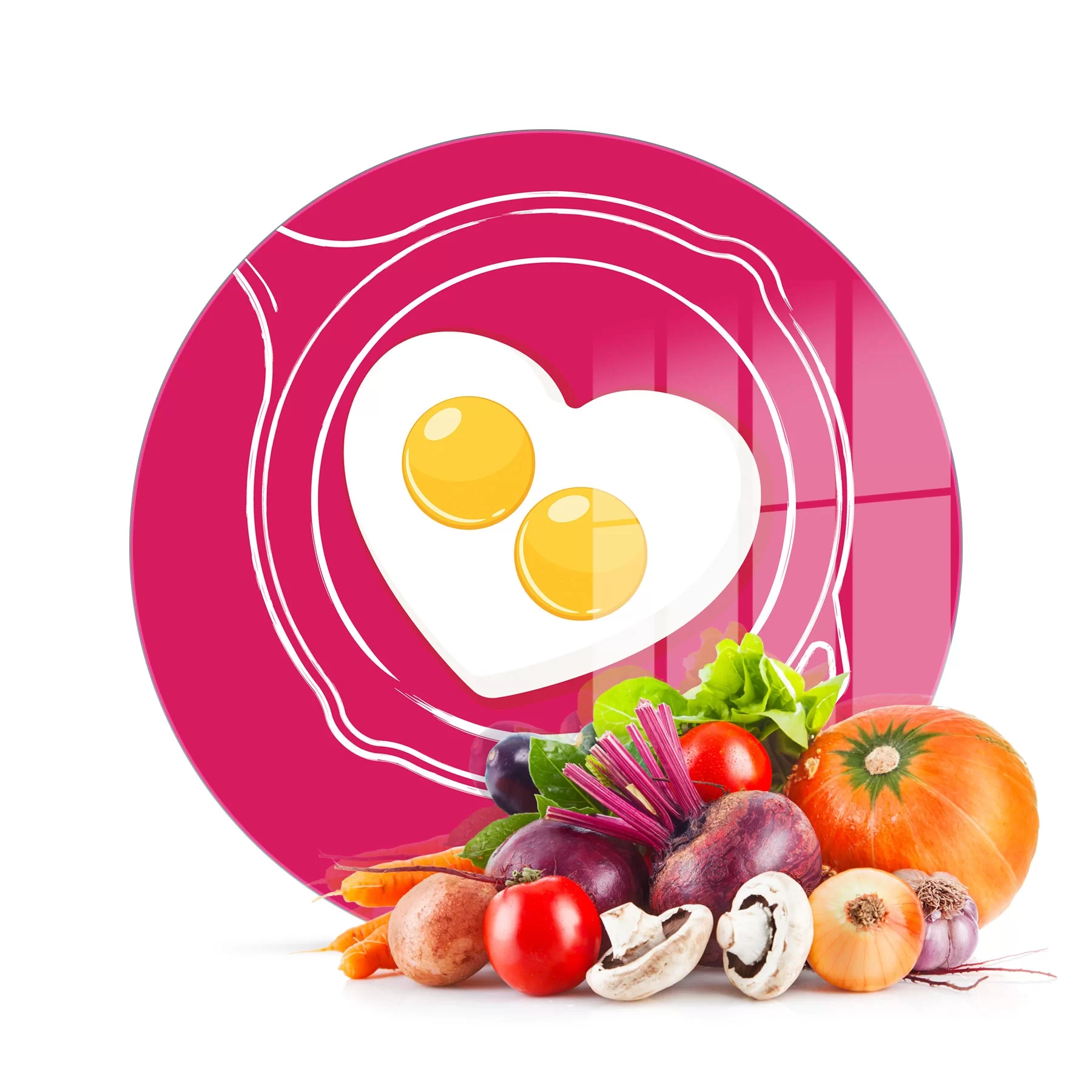 Decovetro Cam Kesme Tahtası ve Sunumluk Yuvarlak Aşk Yumurtası Desenli 30x30 Cm