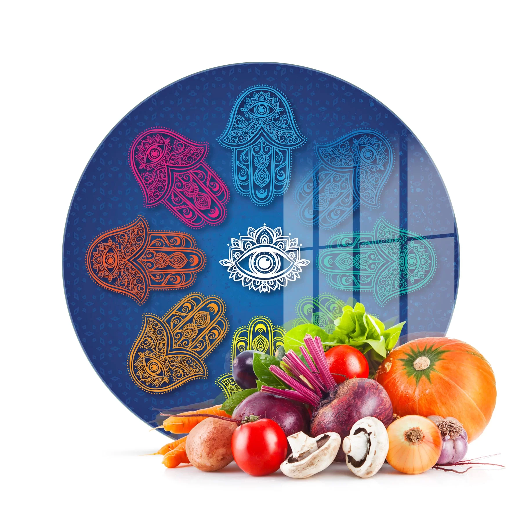 Decovetro Cam Kesme Tahtası ve Sunumluk Yuvarlak Fatma Ana Eli Desenli 30x30 Cm