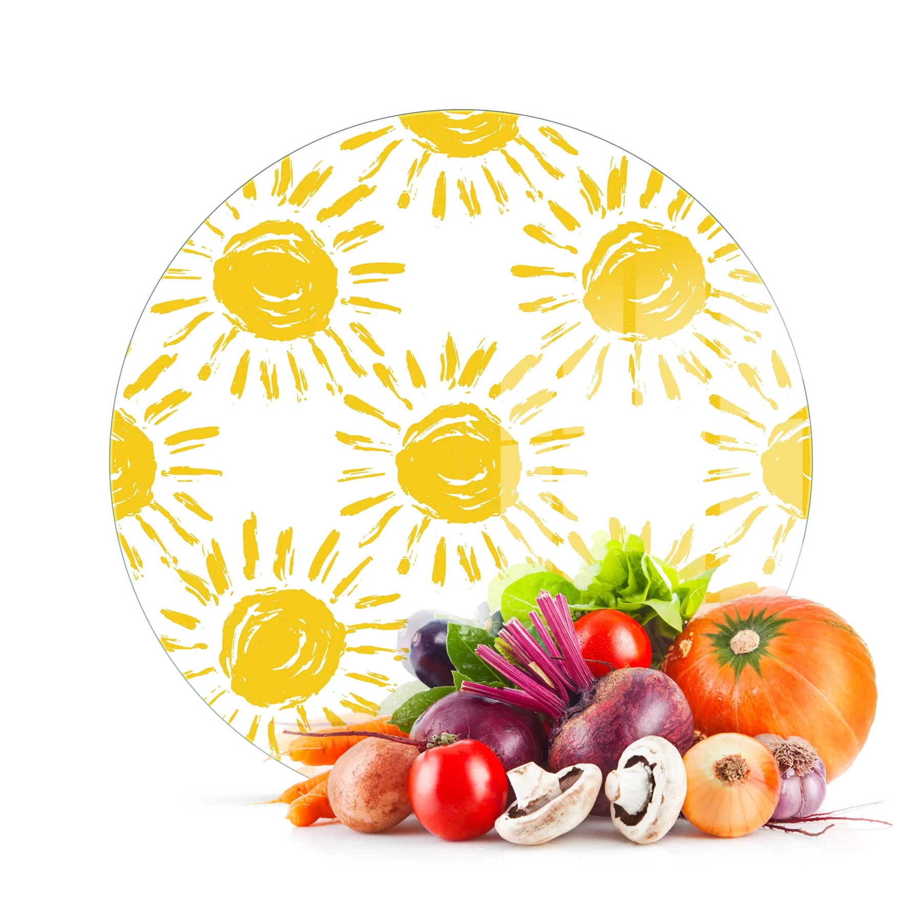 Decovetro Cam Kesme Tahtası ve Sunumluk Yuvarlak Güneş Desenli 30x30 Cm