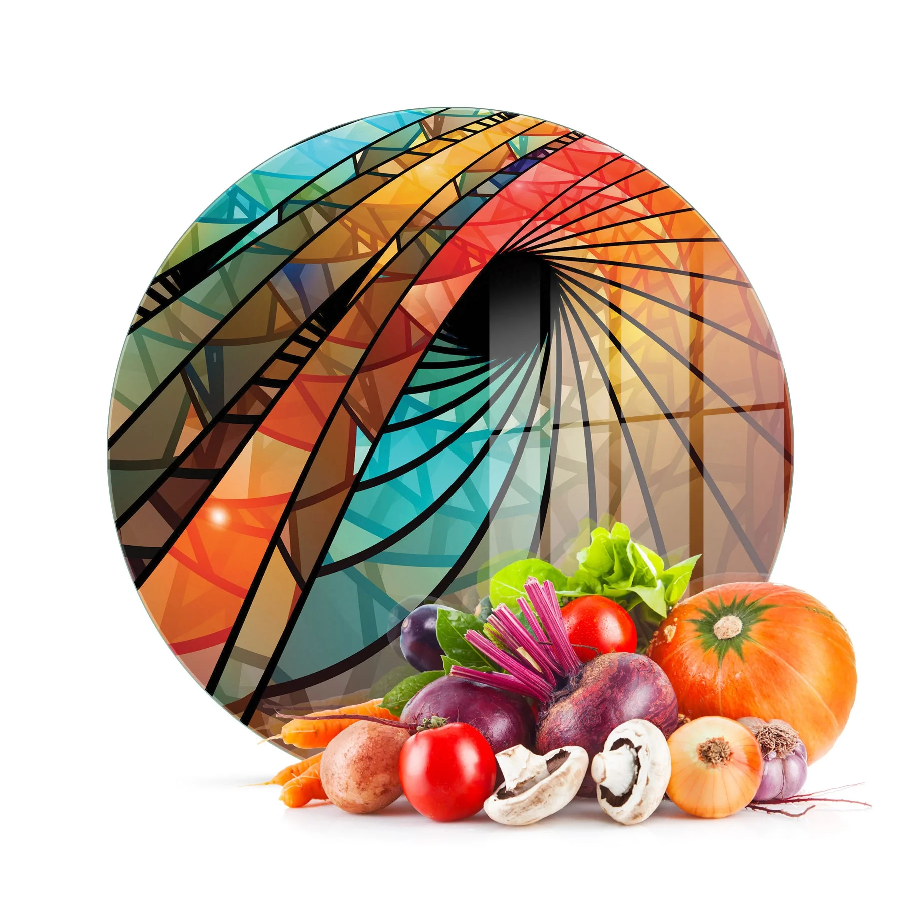 Decovetro Cam Kesme Tahtası ve Sunumluk Yuvarlak Geometrik Desenli 30x30 Cm
