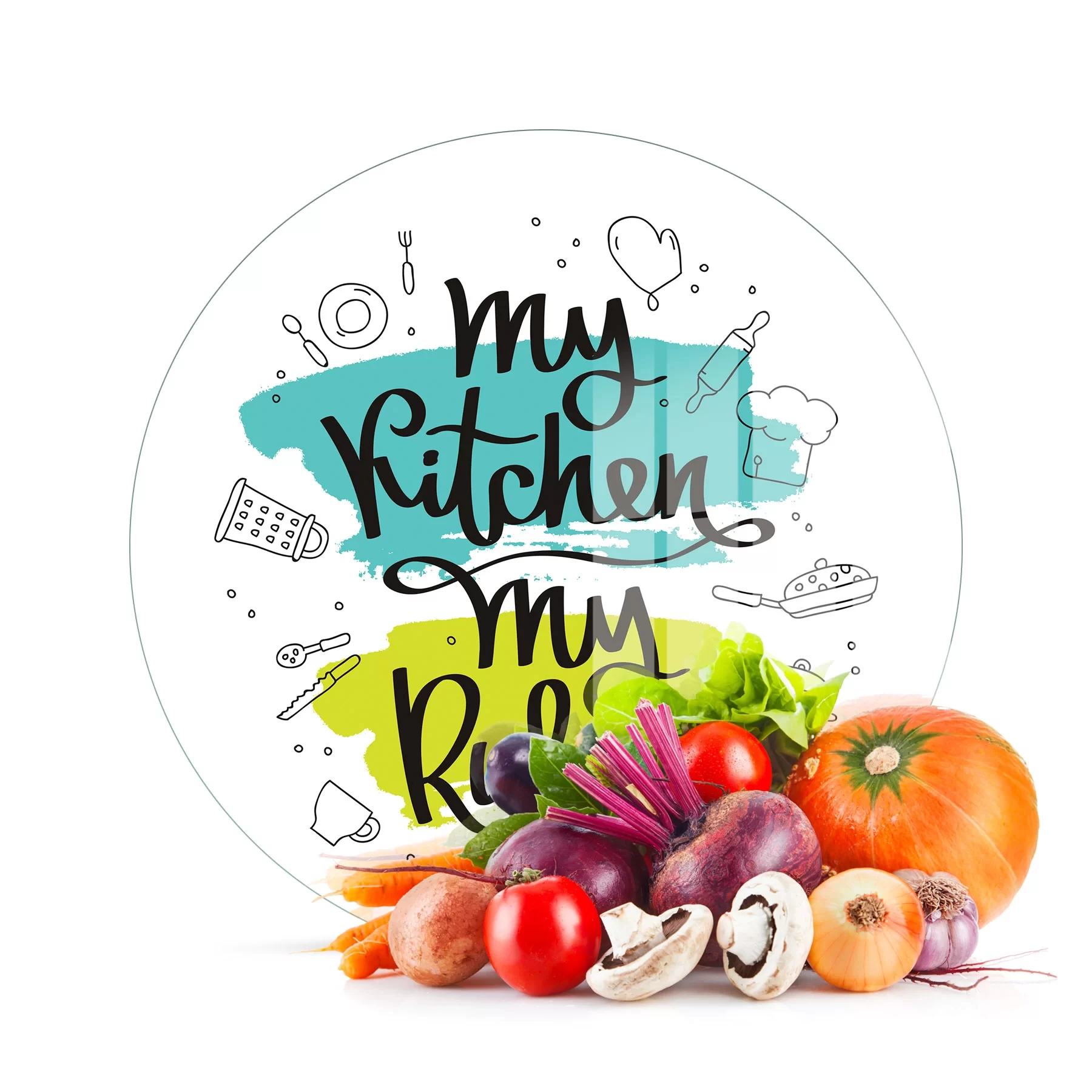 Decovetro Cam Kesme Tahtası ve Sunumluk Yuvarlak My Kitchen My Rules Desenli 30x30 Cm