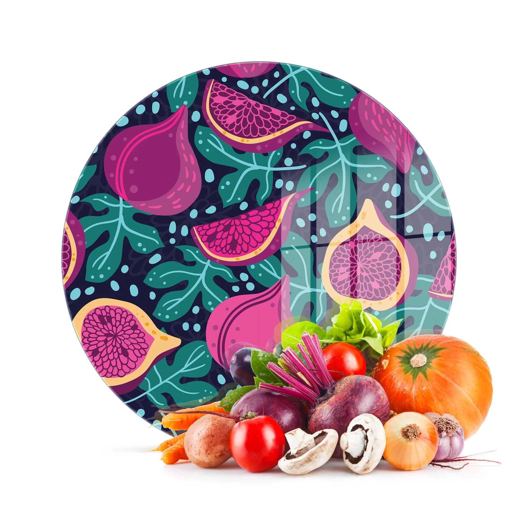 Decovetro Cam Kesme Tahtası ve Sunumluk Yuvarlak İncir Desenli 30x30 Cm