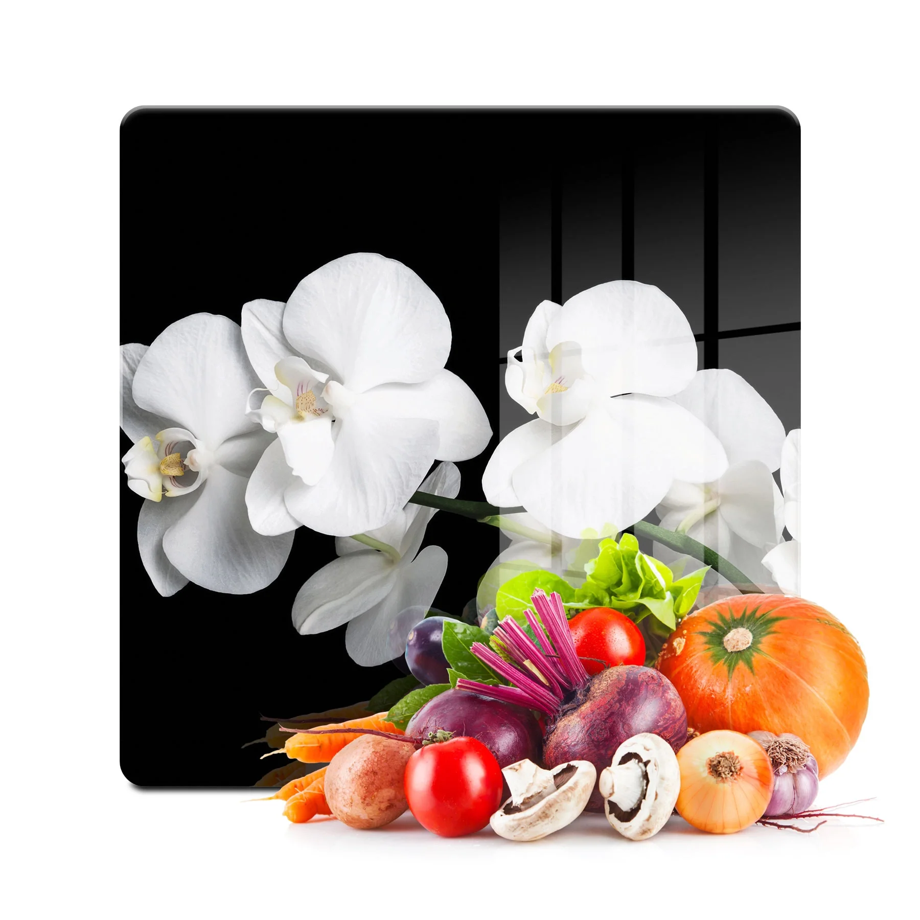 Decovetro Cam Kesme Tahtası ve Sunumluk Kare Orkide Desenli 30x30 Cm