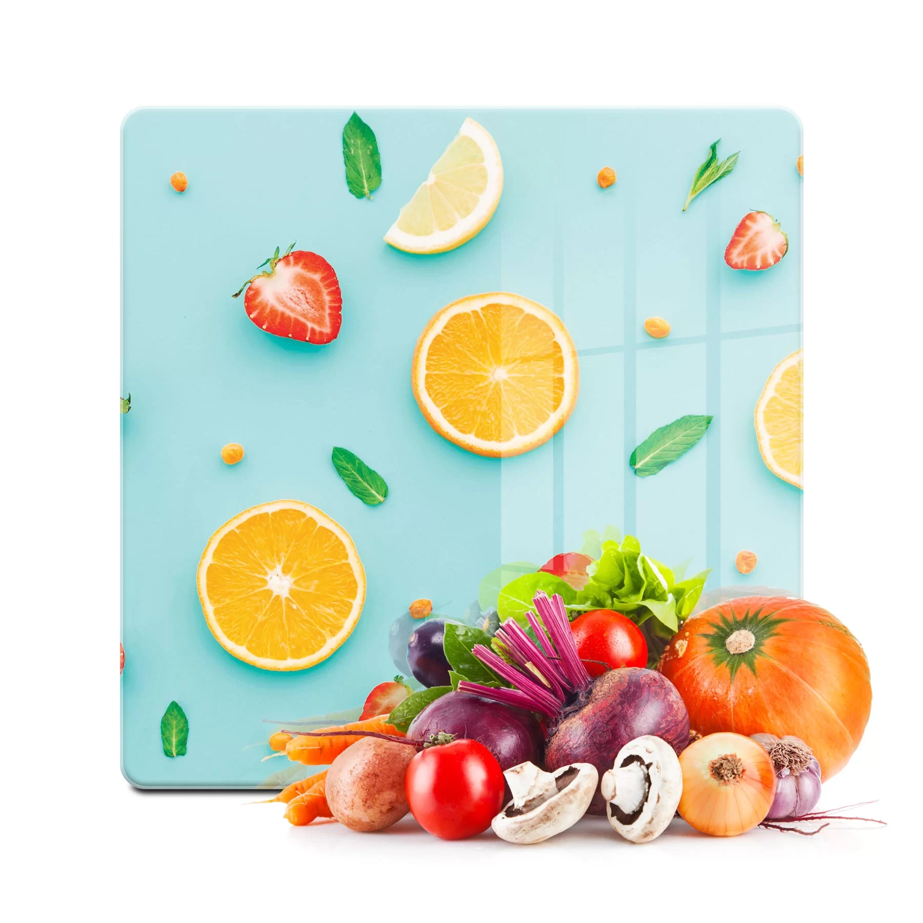 Decovetro Cam Kesme Tahtası ve Sunumluk Kare Meyve Görünümlü 30x30 Cm