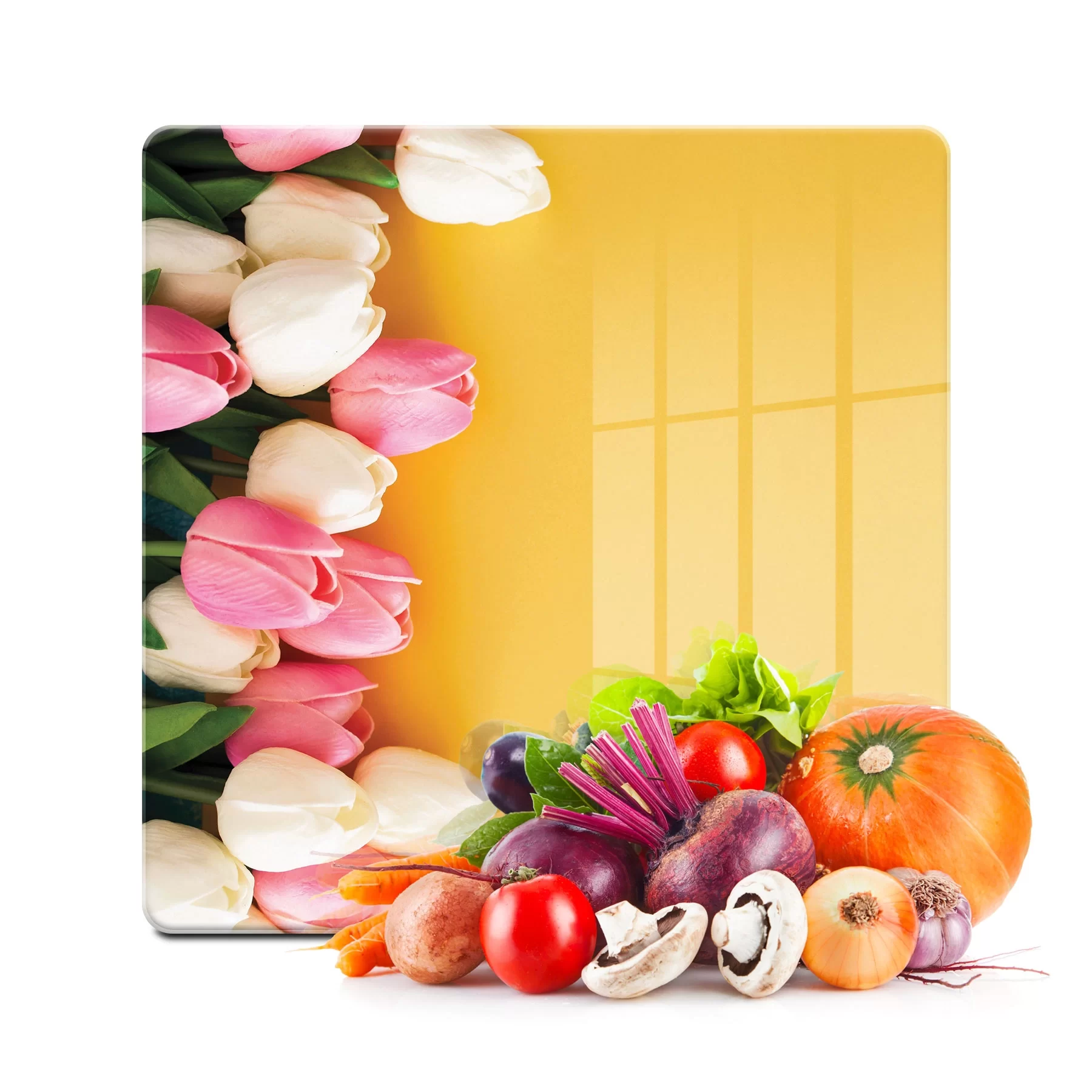 Decovetro Cam Kesme Tahtası ve Sunumluk Kare Lale Çiçekleri Kenar 30x30 Cm