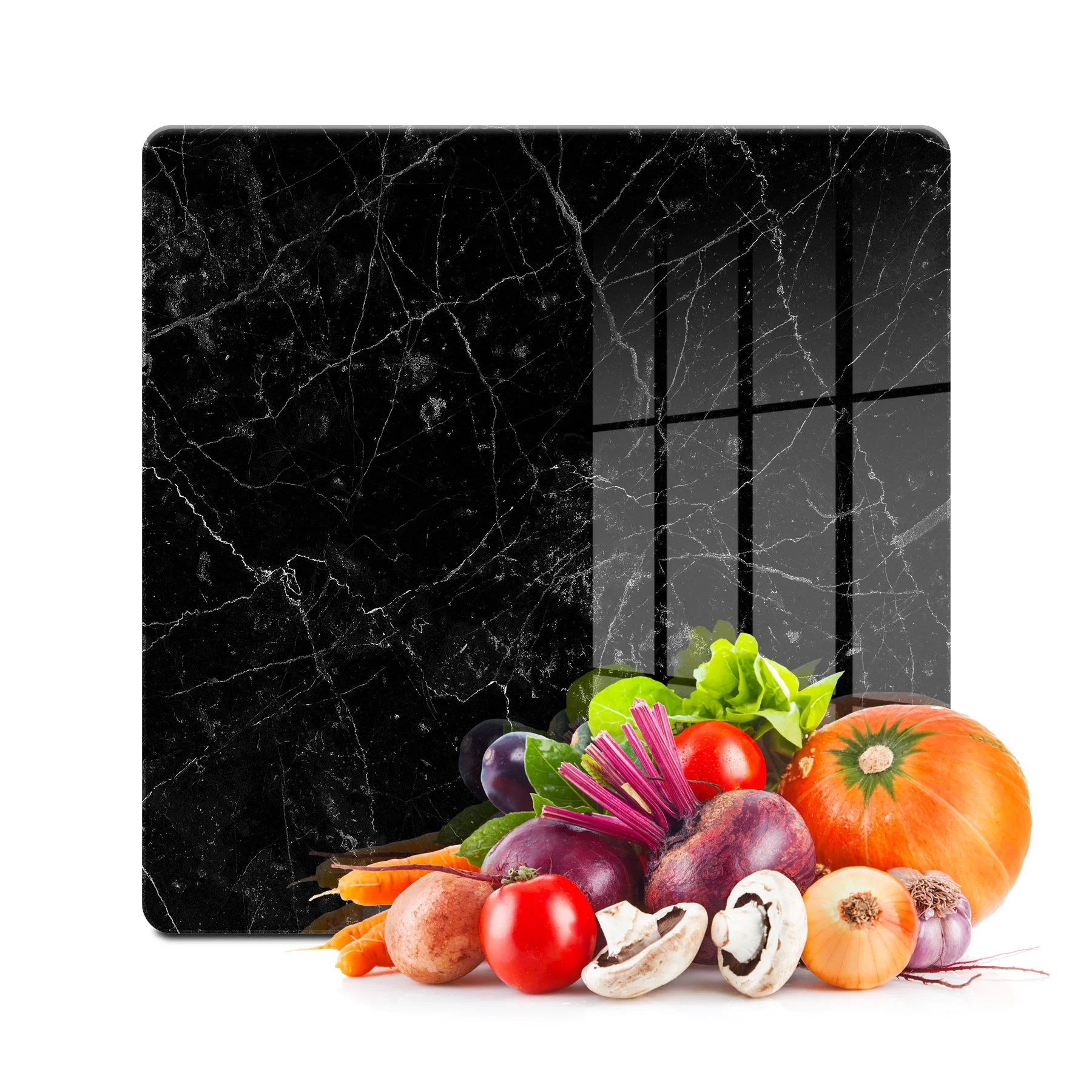 Decovetro Cam Kesme Tahtası ve Sunumluk Kare Siyah Granit Desenli 30x30 Cm