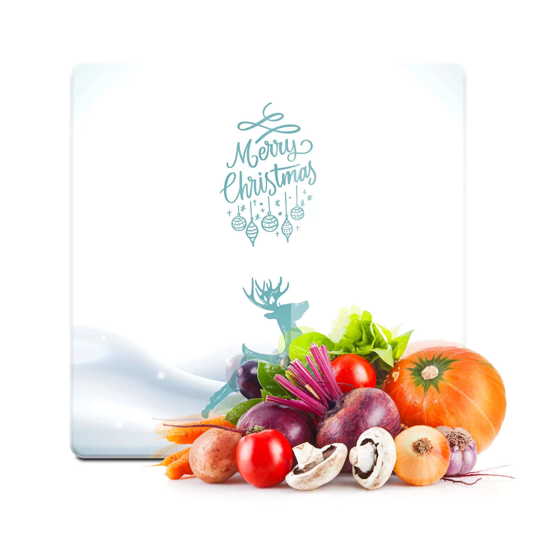 Decovetro Cam Kesme Tahtası ve Sunumluk Kare Yılbaşı Geyik Desenli 30x30 Cm