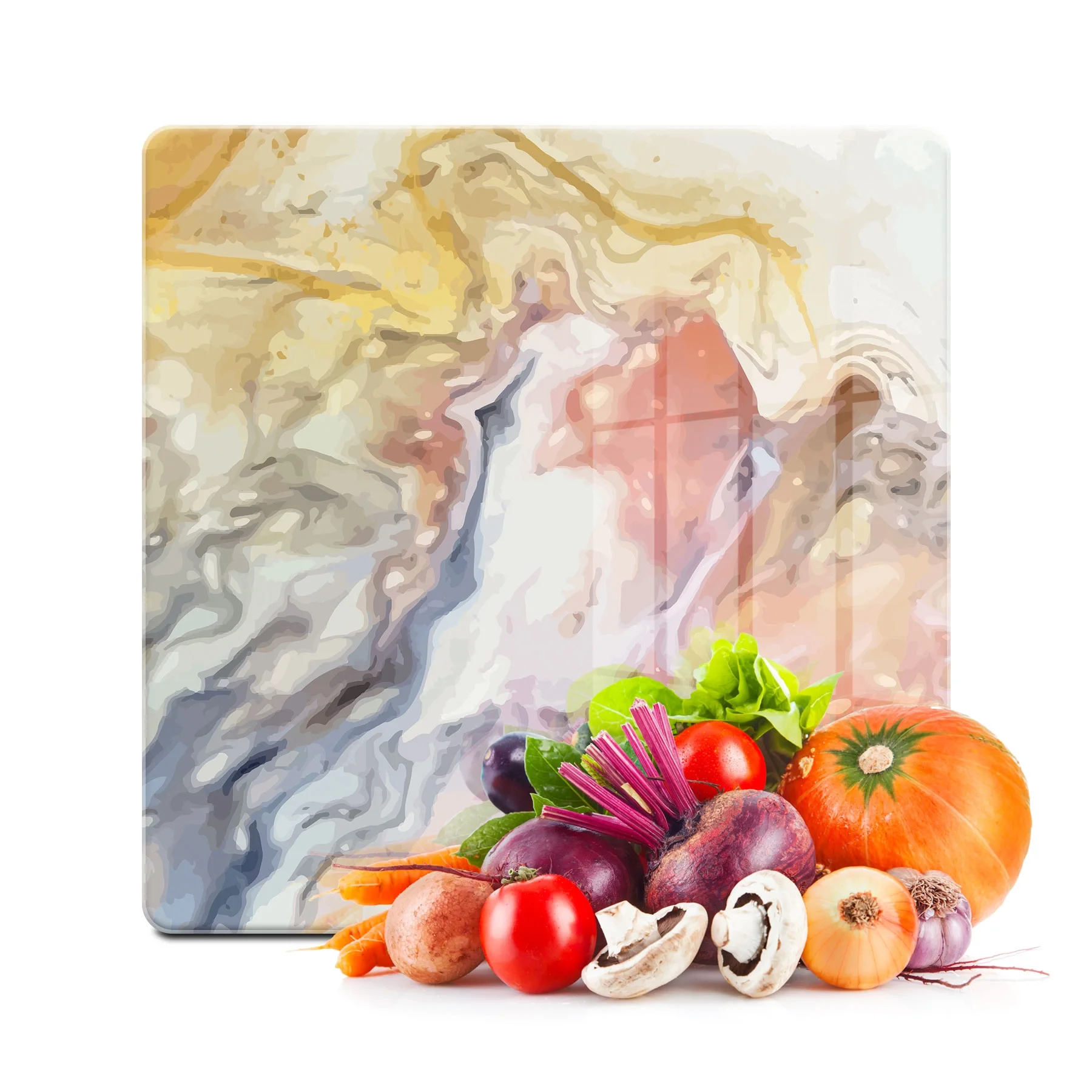 Decovetro Cam Kesme Tahtası ve Sunumluk Kare Karışık Dalgalı Mermer Desenli 30x30 Cm