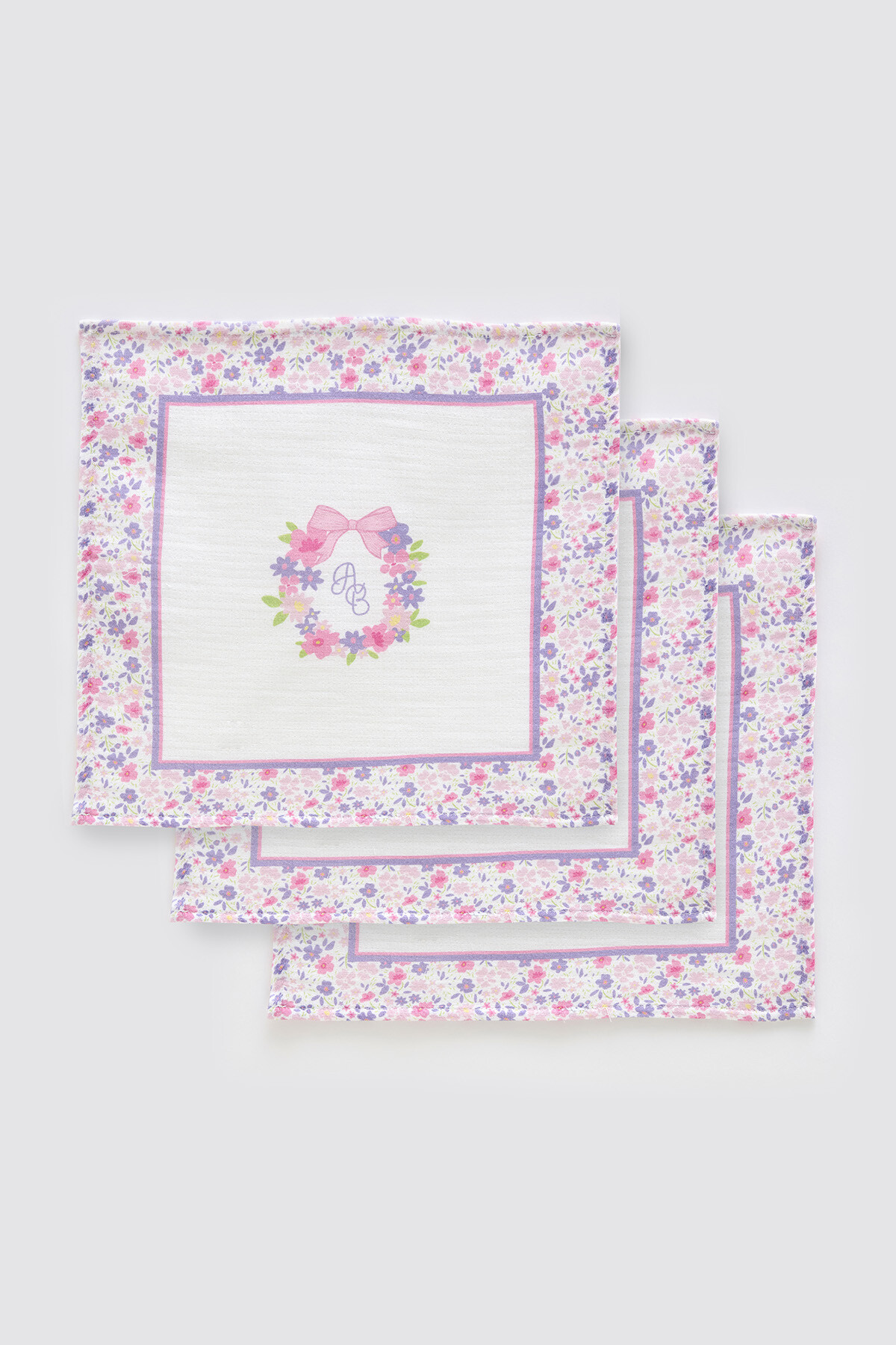3'Lü Ağız Bezi Seti - Minik Çiçekler / Pembe