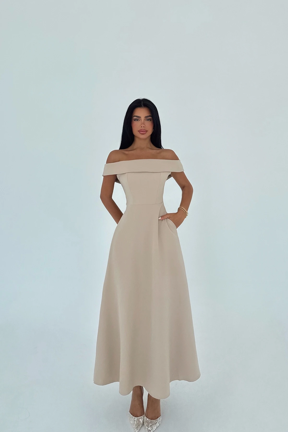 Cream Madonna Collar Dress XS size is used in the image. Made of Double Fabric. Length: 110 cm Waist.31 cm Chest: 54 cm Model Measurements Height 158 ​​Weight 52 Chest 80 Waist 62 Hip 93