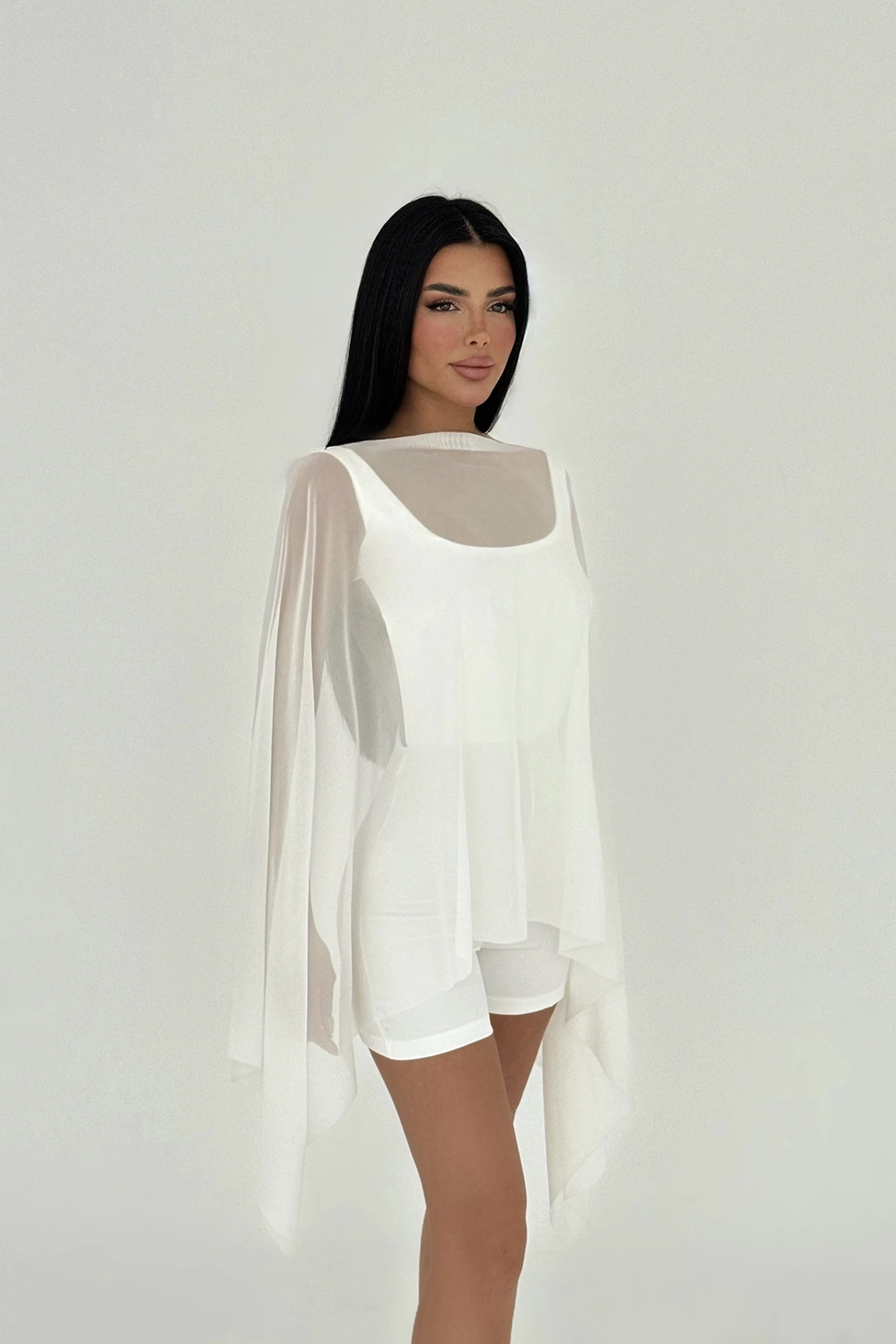 White Basic Jumpsuit XS size is used in the image. Made of Double-Tulle Fabric. Length: 74 cm Waist: 33 cm Chest: 42 cm Model Measurements Height 158 ​​Weight 52 Chest 80 Waist 62 Hip 93