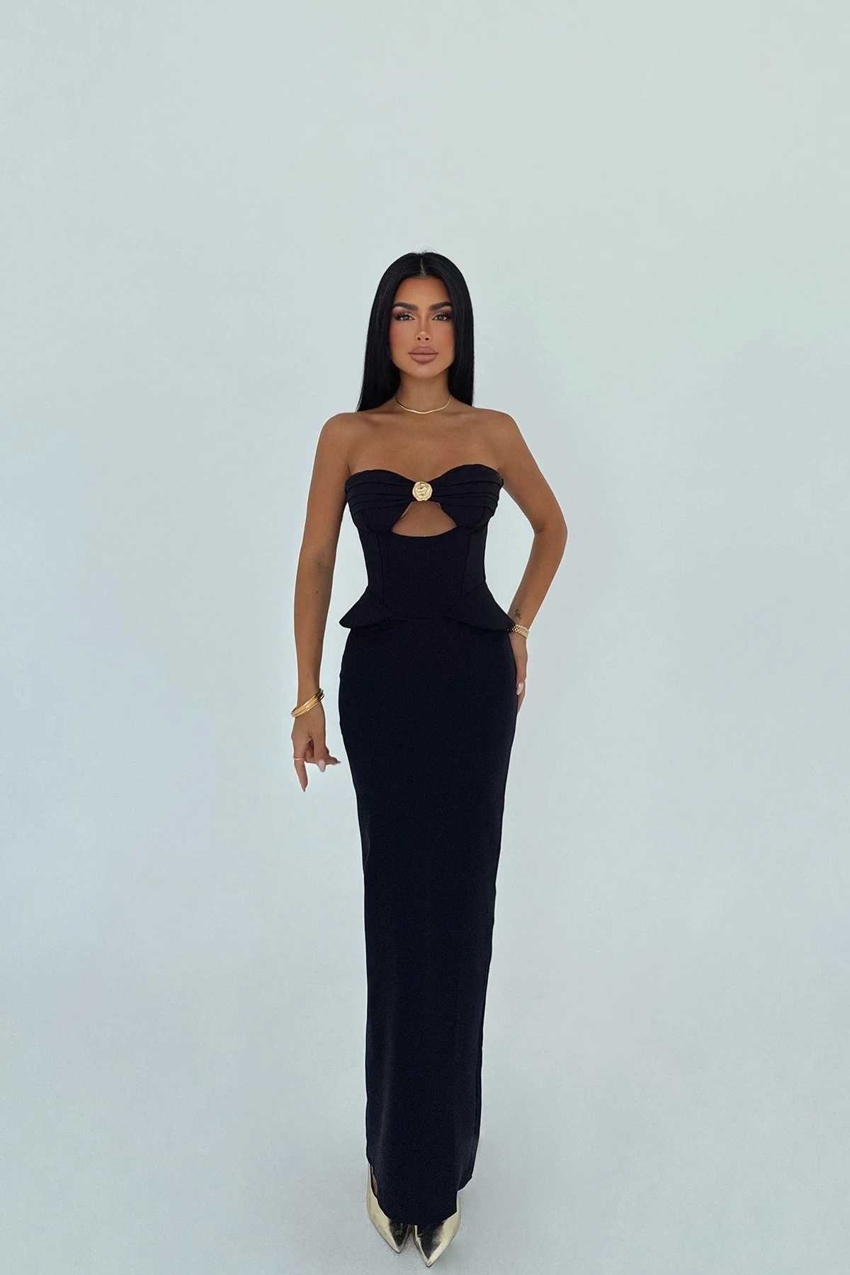 Black Strapless Dress with Pocket Detail