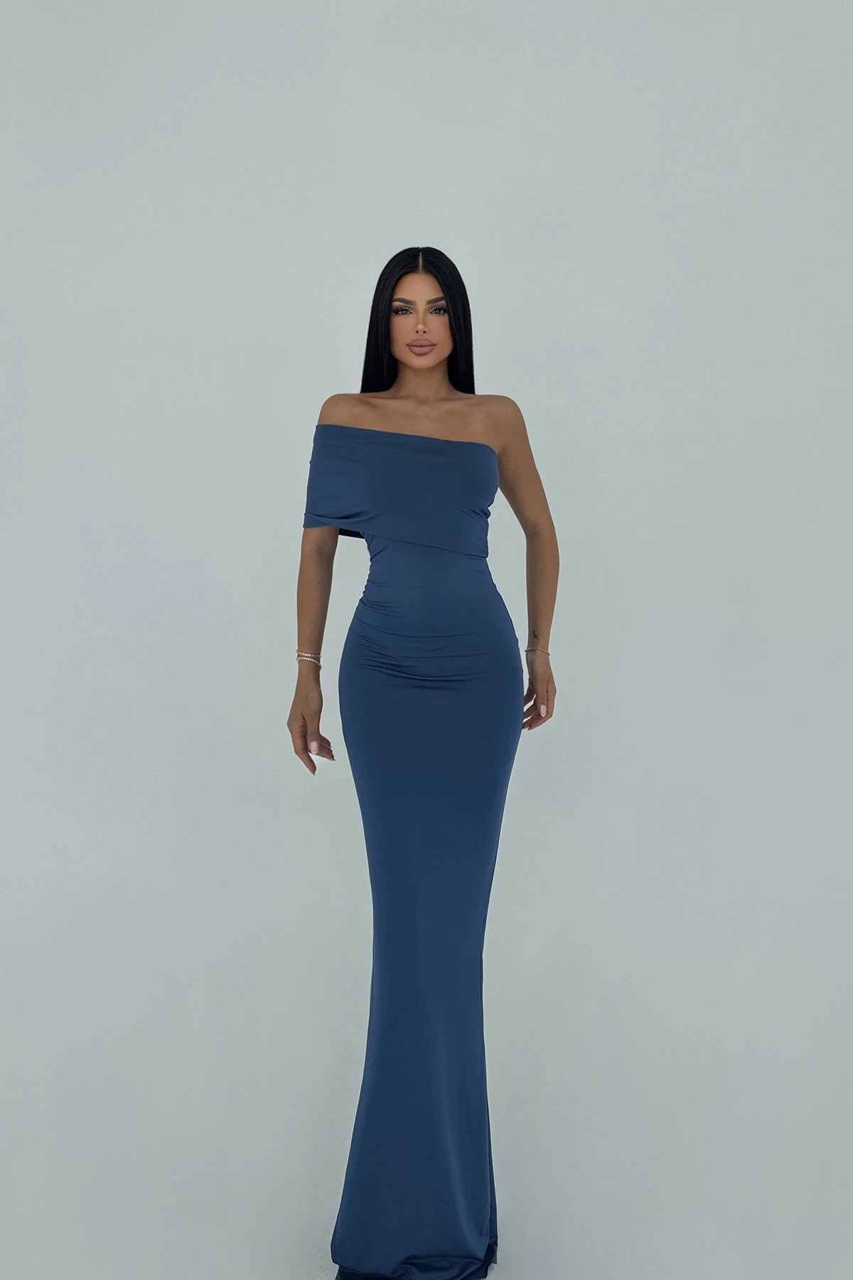 Saks Vanya Single Sleeve Dress The image uses size XS. Length: 133 cm Waist: 31 cm Chest: 34 cm Model Measurements Height 158 ​​Weight 52 Chest 80 Waist 62 Hip 93