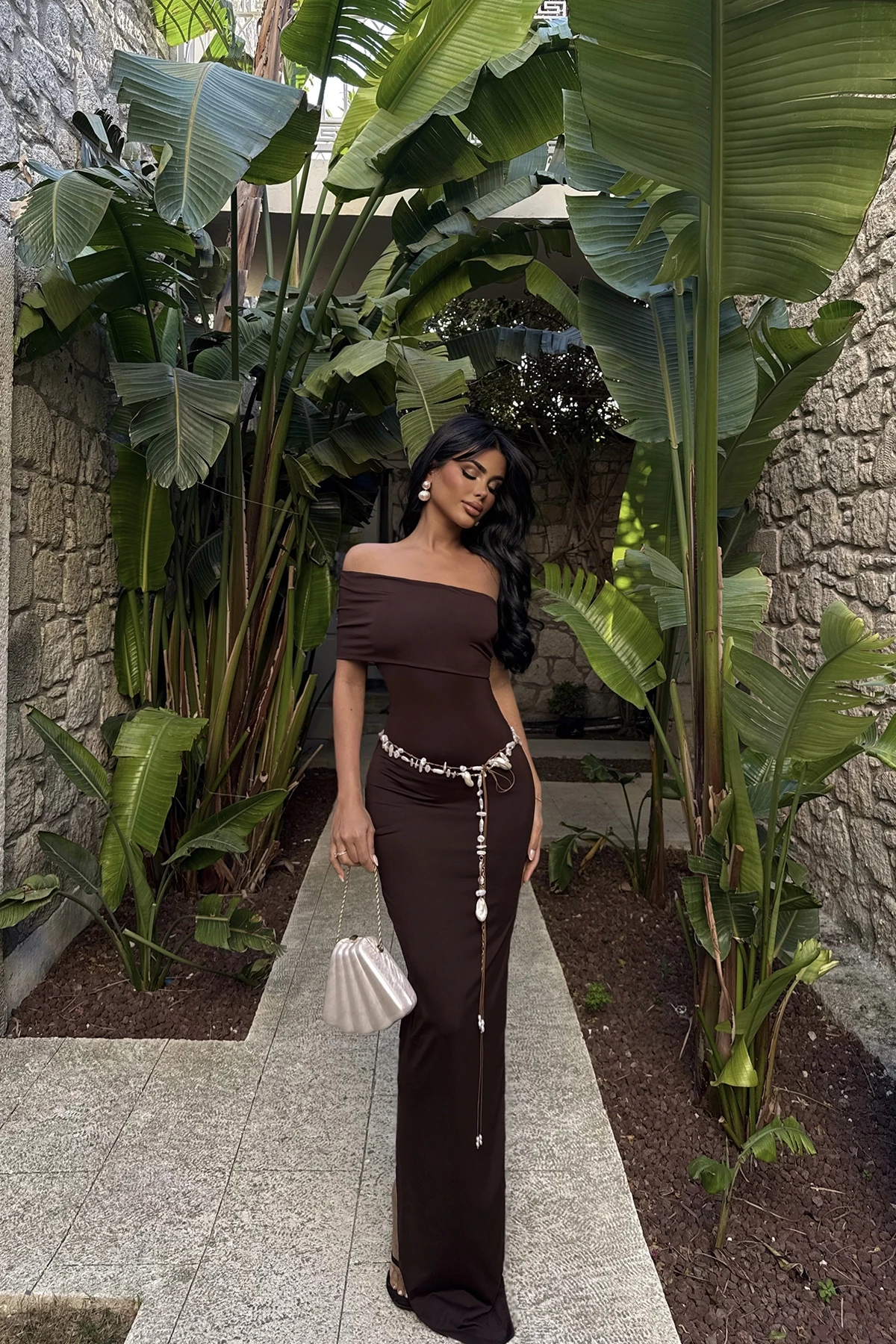 Brown Vanya Single Sleeve Dress The image uses size XS. Length: 133 cm Waist: 31 cm Chest: 34 cm Model Measurements Height 158 ​​Weight 52 Chest 80 Waist 62 Hip 93