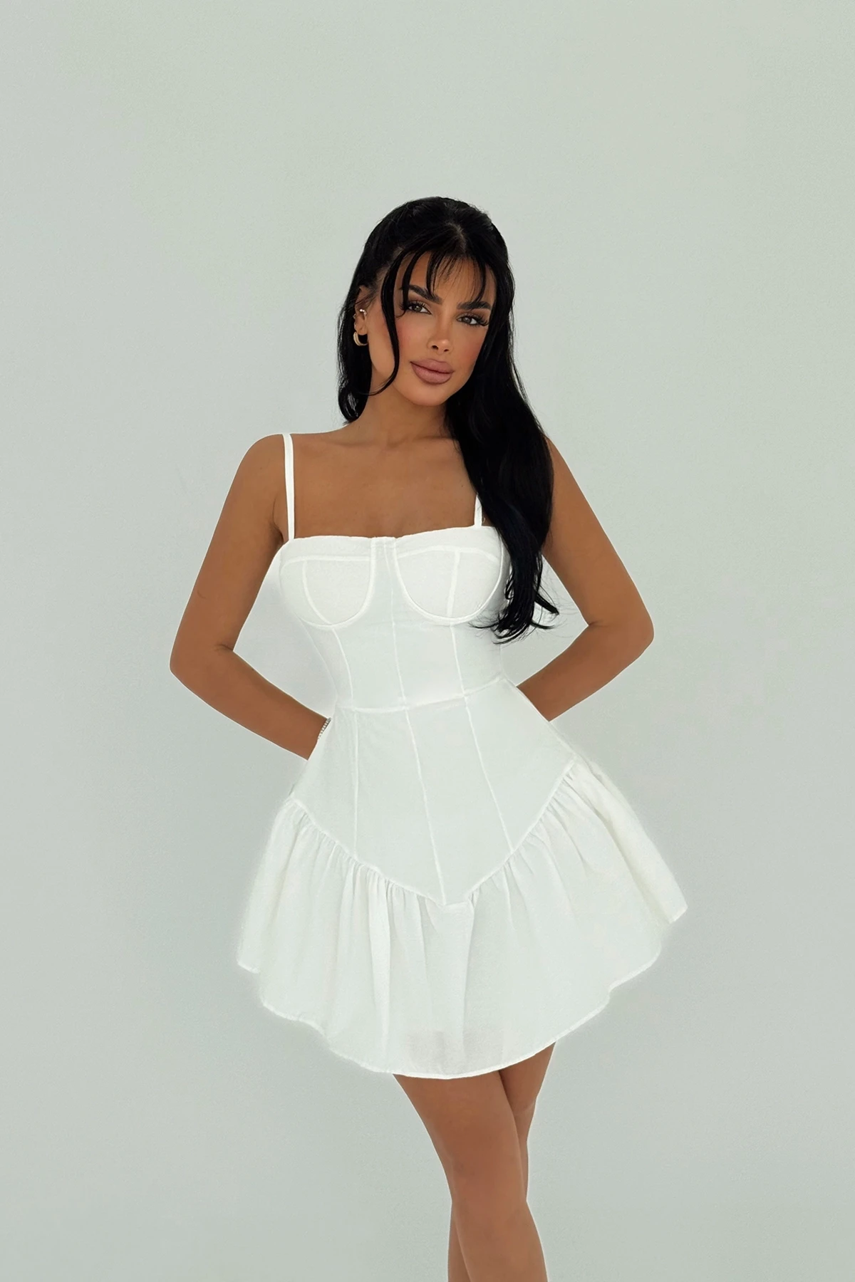 White Tatiana Dress Size S is used in the image. Dress Length: 77cm Chest: 34cm Waist: 30 Model Measurements Height: 160 Weight: 50 Chest: 80 Waist: 62 Hip: 94