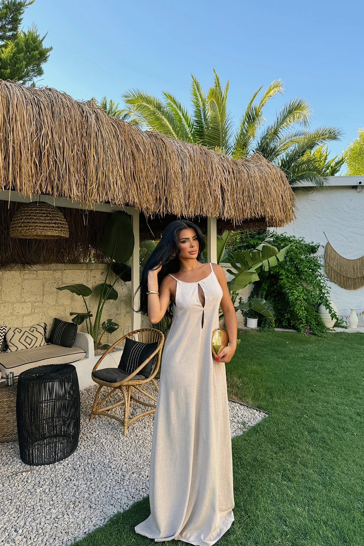 Beige Fabienne Linen Dress Made from Linen Fabric Image size S is used Dress Length: 144 Cm Bust: 41 Cm Waist: 52 Cm  Model Measurements: Height: 160 Weight: 50 Chest: 80 Waist: 62 Hip: 94