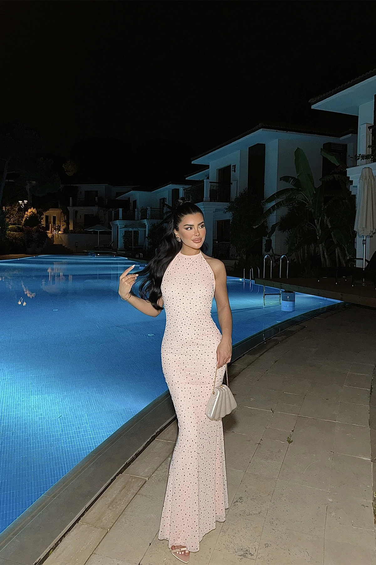 Powder Stone Detail Long Dress Made from Tulle Fabric Image size S is used Dress Length: 142 Cm Bust: 32 Cm Model Measurements: Height: 160 Weight: 50 Chest: 80 Waist: 62 Hip: 94