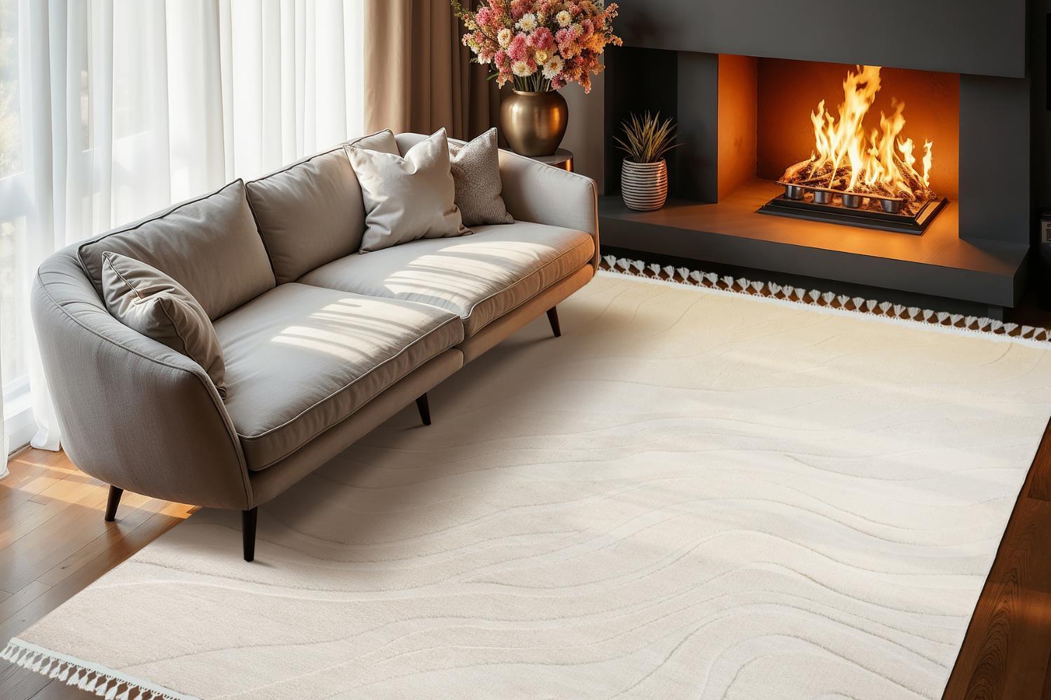 Dinarsu Alaçatı Püsküllü Kaymaz Taban Halı 150x230 Lorey Açık Bej