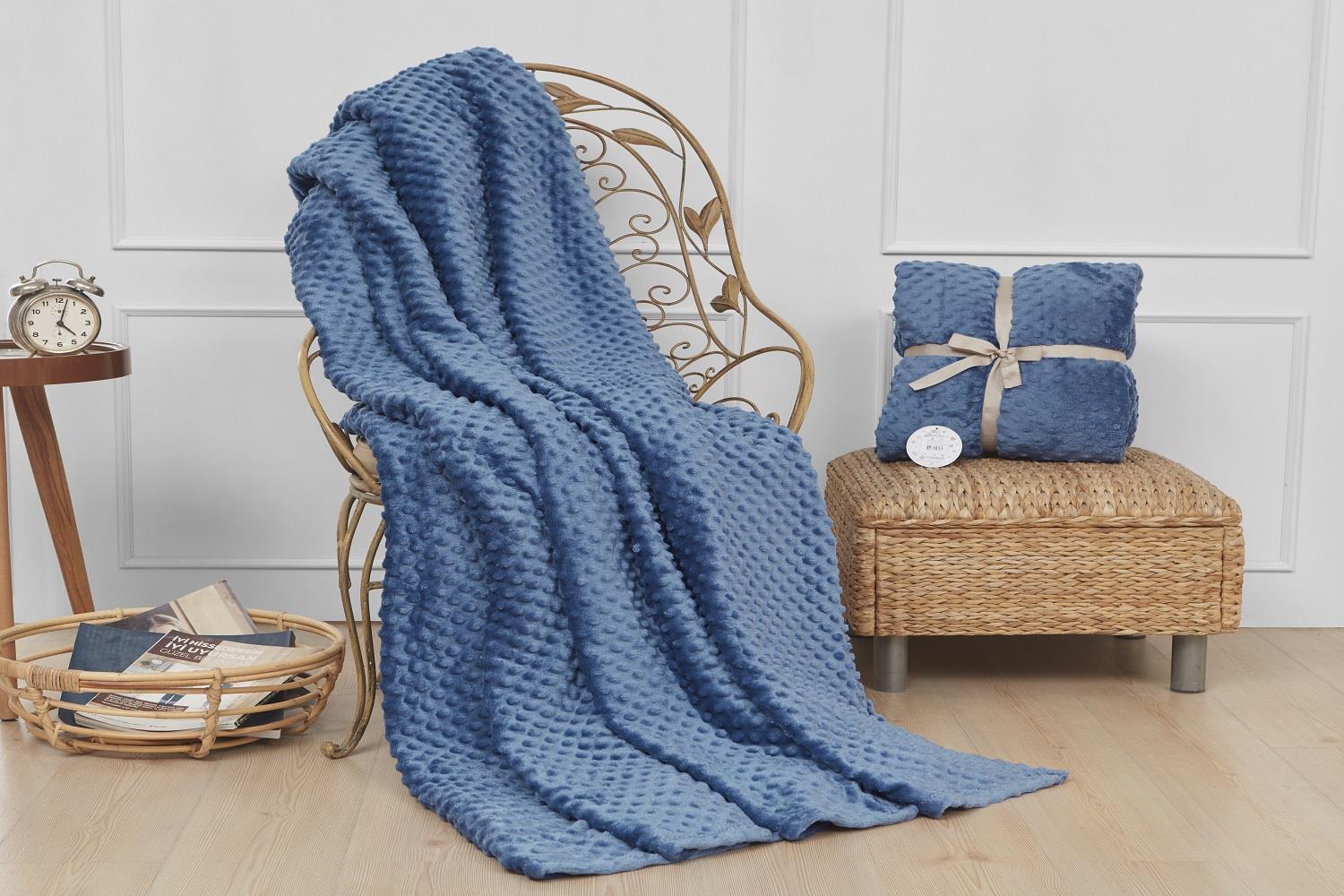 Aksu İpeksoft Tomurcuk Çift Kişilik Vizon Battaniye 200x220 İndigo
