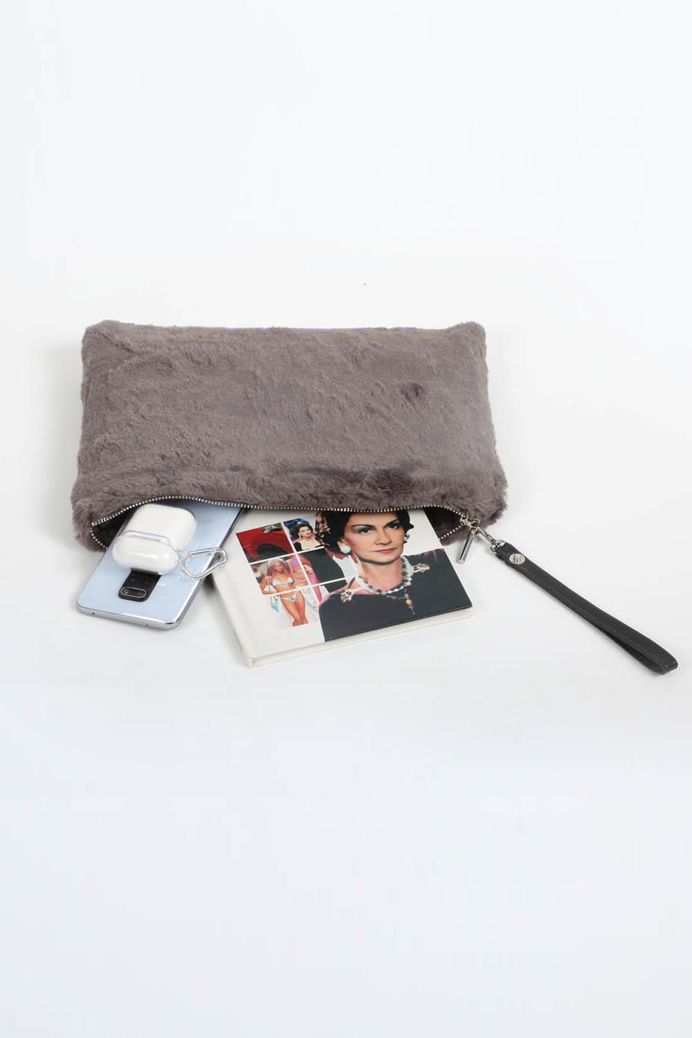 Fur Fashion El Çantası Fermuarlı 22x30 Antrasit