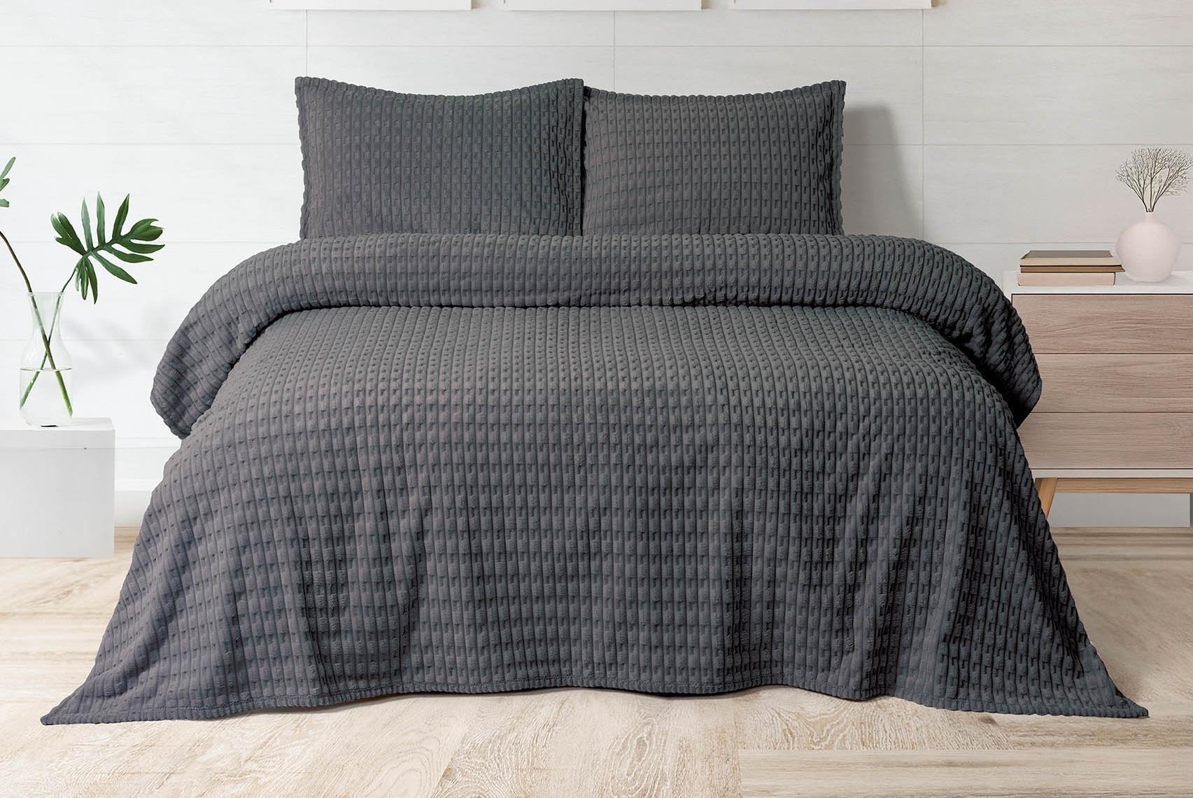 Merinos Modern Twist 3 Parça Çift Kişilik Battaniye Seti Kutulu 220x240 Koyu Gri