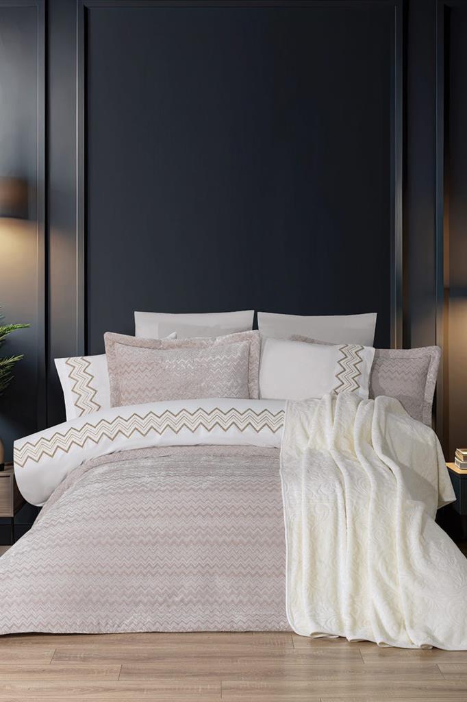 Mısra 10 Parça Battaniyeli Çeyiz Seti Krem