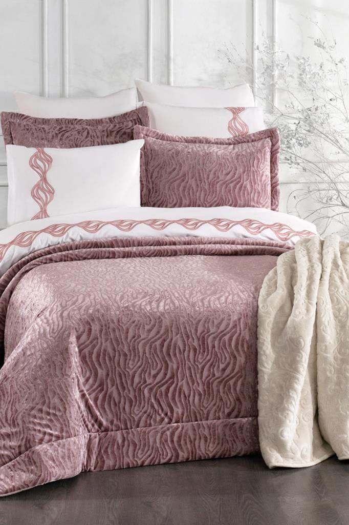 Yakut 10 Parça Battaniyeli Çeyiz Seti Gül Kurusu