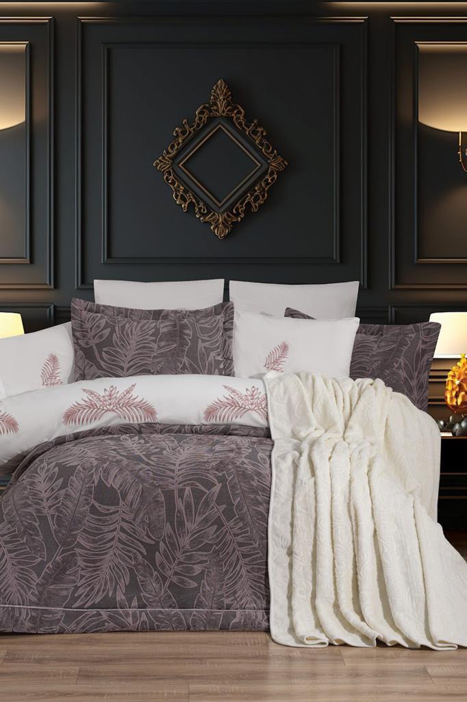 Defne 10 Parça Battaniyeli Çeyiz Seti Gül Kurusu